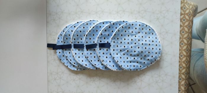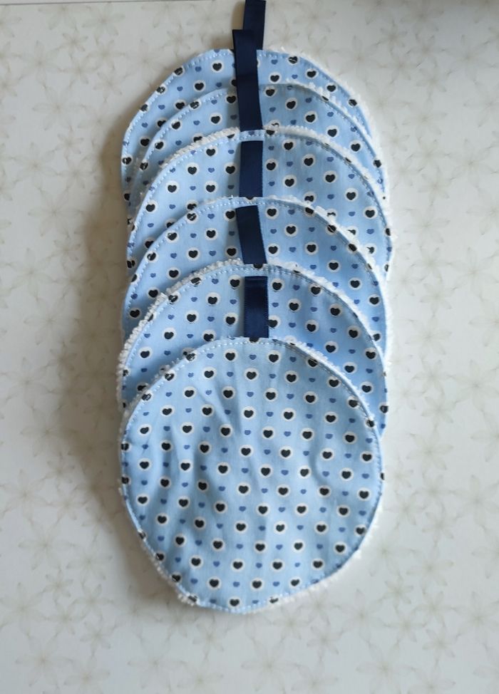 Lot de 6 lingettes pour se démaquiller Tissu en coton bleu ciel imprimé cœur dimension en cm 11 Tissu micro éponge Bambou doudou Oeko-Tex pour les lingettes Lavage à 30 degrés maximum Fait main