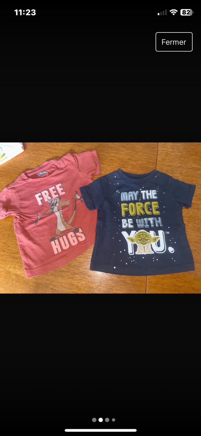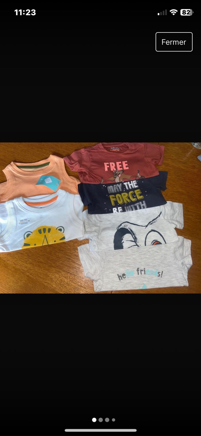 ✏️tee shirt Simba gris et Timon rouge marque Disney Baby taille 3 mois ✏️tee shirt star wars bleu marque Star Wars taille 3 mois ✏️tee shirt gris et les 2 débardeurs marque tex baby taille 3 mois