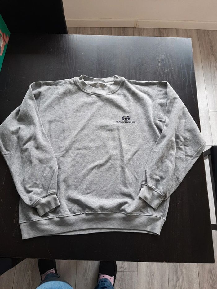 Pull gris Sergio tâchons Sans taille Voici les mesures Sous de bras à sous de bras : 59 cm Épaule à poignet : 57 cm Du col à la taille 62 cm