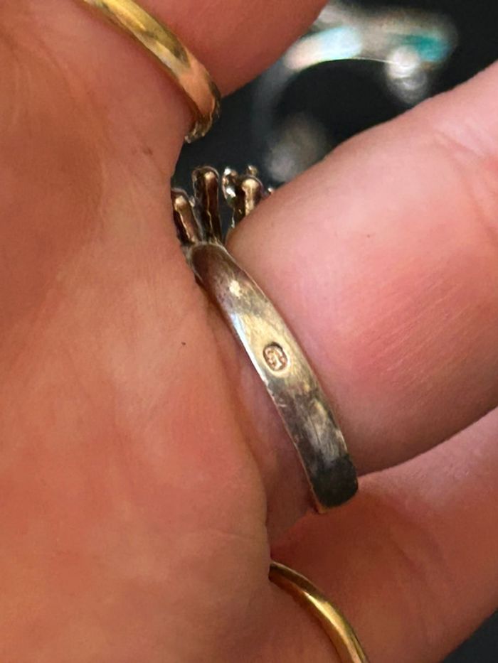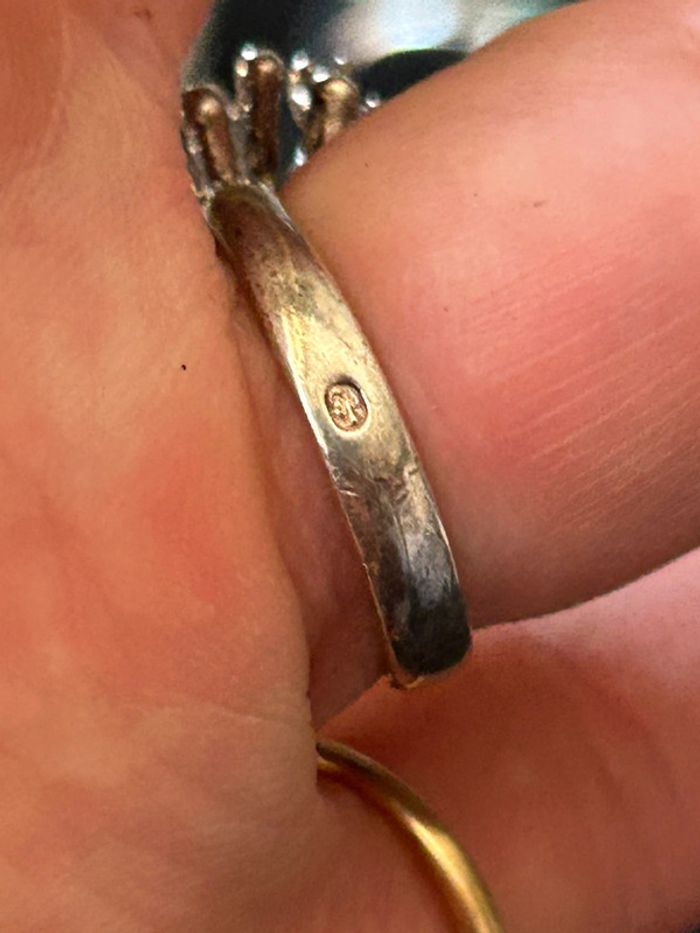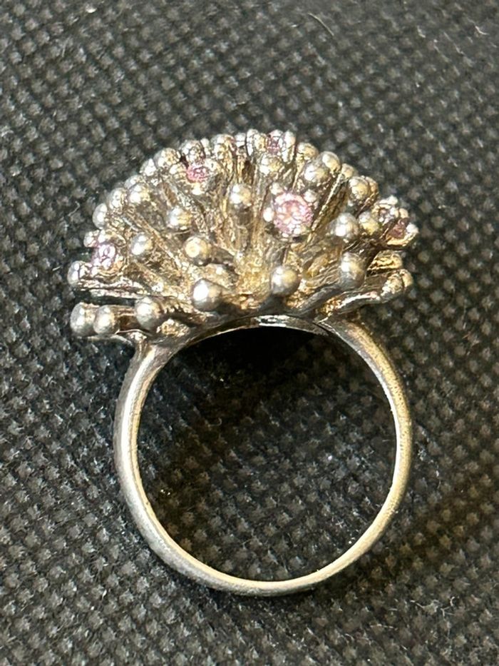 Jolie bague en argent massif avec petites pierres roses T. 56 femme TBE