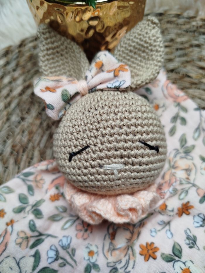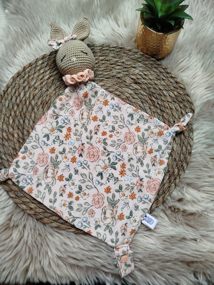 Doudou lange lapin D'autres animaux possibles: ourson, koala, lion, renard Vous pouvez choisir d'autres tissus également Prenom flocage+2€ Prénom broderie+4€