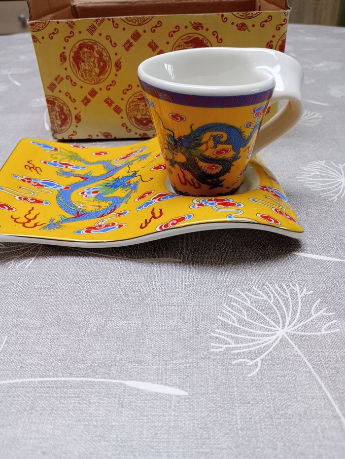 Ensemble de tasse et sous-tasse avec motif chinois. Neuf. Me contacter pour les frais de port
