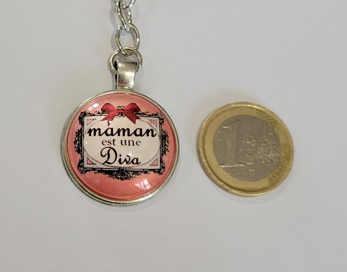Porte cles maman est une diva Diametre du pendentif " MAMAN EST UNE DIVA " :Diametre: 2,5 cms. Accroche metal argenté . Hauteur totale : 9,5 cms N'hésitez pas à regarder mes autres ventes. Envoi soigné et rapide.