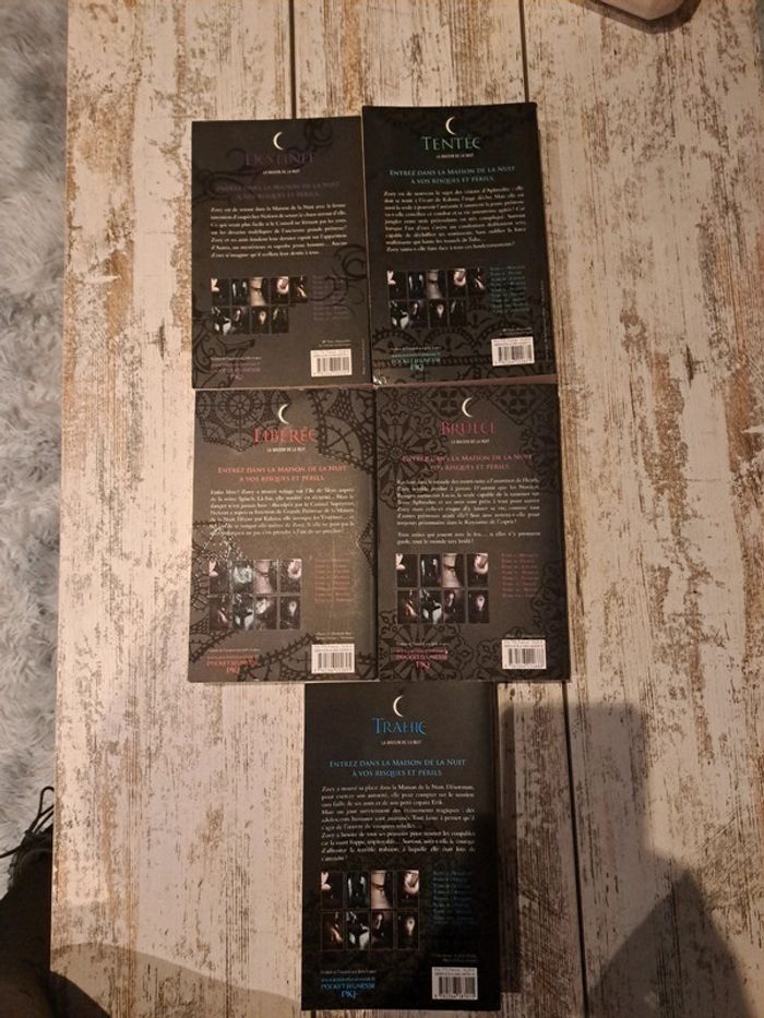 Lot De 5 livres grand format la maison de la nuit Tentée trahie brûlée libérée destinée Auteur : Cast, Kristin Langue : Français le livre 7 € ou 35€ le lot Envoi mondial relay uniquement