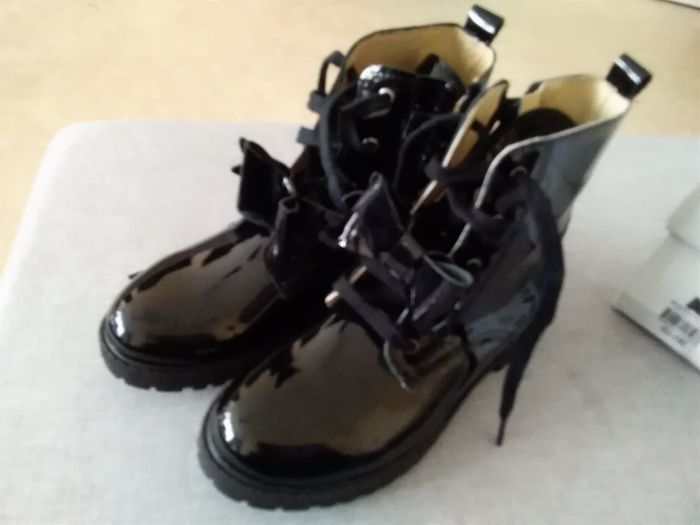 Bottines une très jolie paire de bottines verni . La pointure ne correspond pas pour ma fille malheureuse Du pareil au même Taille31