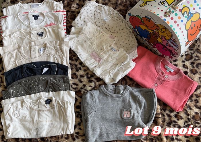 👋🏻BONJOUR ET BONNE VISITE👋🏻 🍄État : très bon état à bon état🍄 🍄Taille : 9 mois🍄 🍄Maison non fumeur🍄 🔢Comprenant 11 pièces🔢 ❄️🍁Automne/hiver🍁❄️ 🏷️Marque Vertbaudet, Kiabi, Mes petits canailloux, Mr MME🏷️ 7 tee-shirts ML 1 robe pull 1 gilet 2 chemisiers 📦Envoi par Mondial Relais dans les 24H📦 🏷Un lot = réductions automatiques🏷 ♻️Dressing trié dans mon profil♻️ 📲N’hésitez pas à me contacter📲