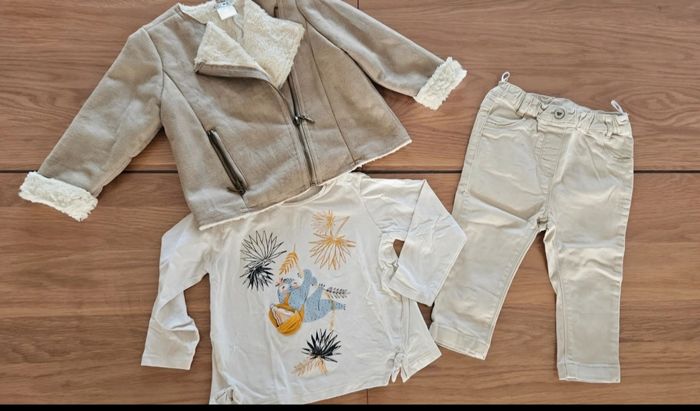 Joli lot comprenant jean, t shirt manche longue et joli manteau fourré