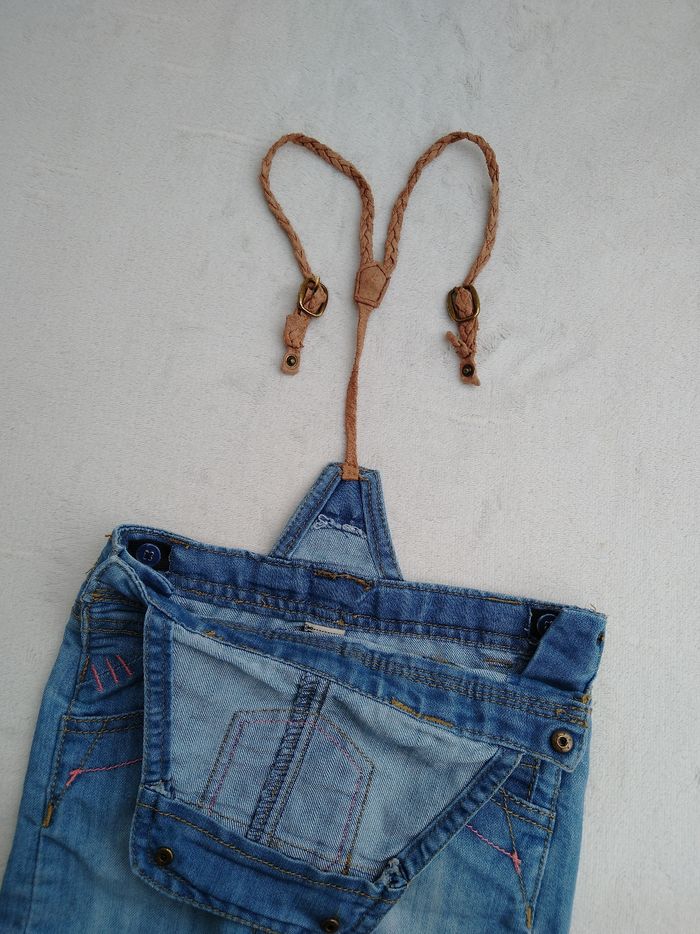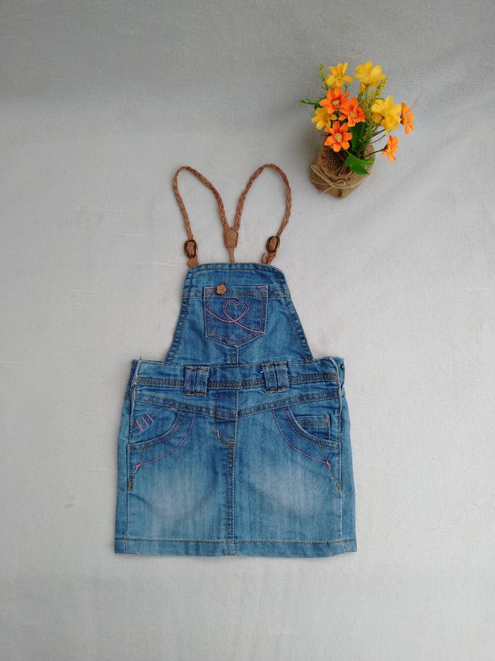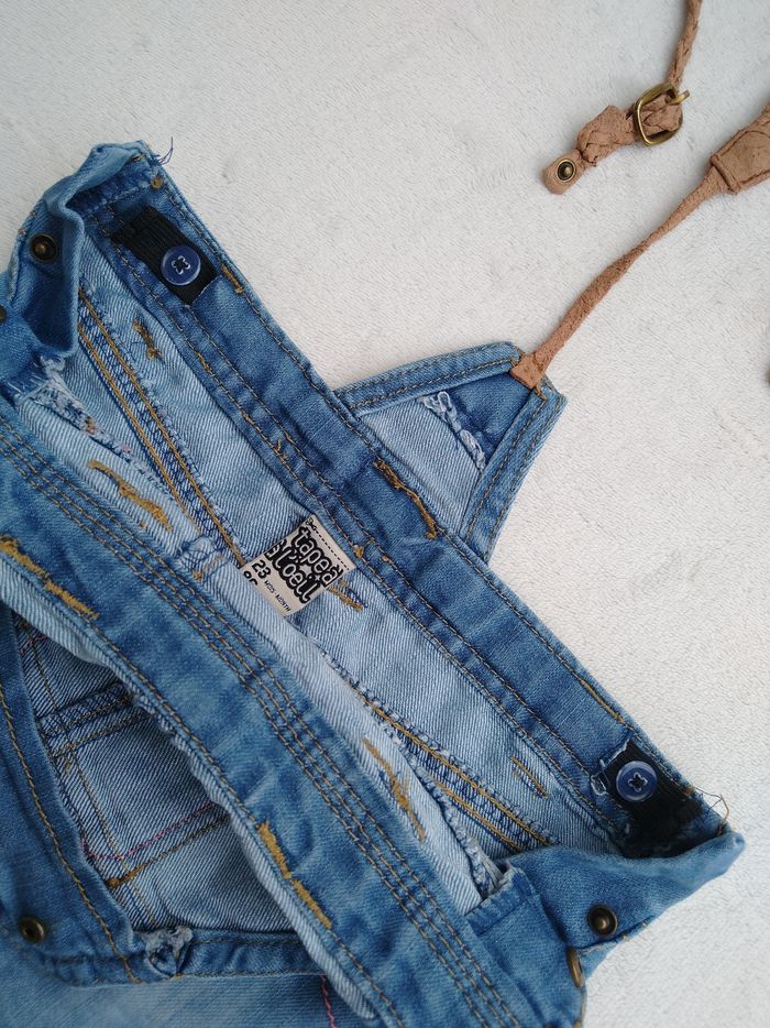 Robe salopette en jean Marque Tape à l'œil Taille 23 mois, 86 cm • Coloris bleu • Bretelles avec pressions • Taille élastique ajustable • Pressions sur les côtés • 4 poches • Bretelles abîmées En très bon état #evelyne_filles_24mois #evelyne_filles