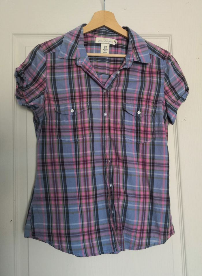 Vends chemisier a carreaux aux coloris rose, bleu, noir blanc. Taille 40, Marque L.O.G.G En parfait état.