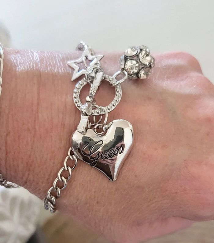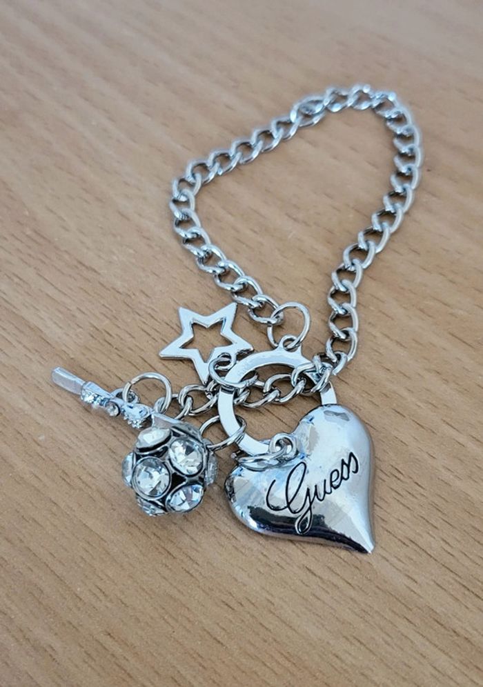 Bracelet chaîne Gourmette fantaisie avec cœur, étoile et strass Ajustable avec la boucle