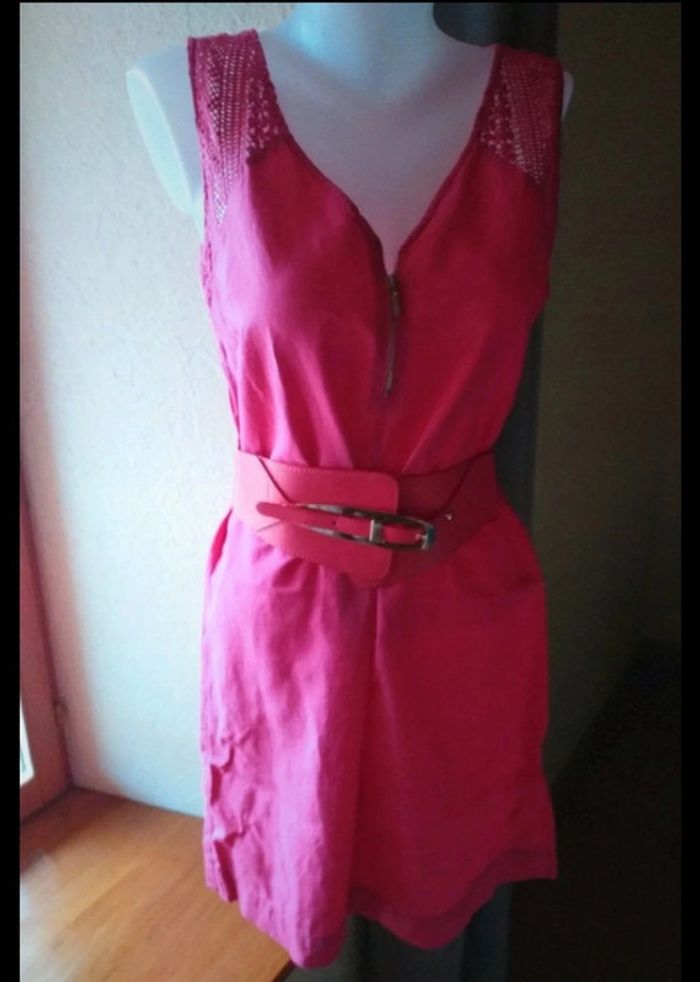 Robe rose fuchsia avec fermeture éclair sur le décolleté et ajourée en haut. Portée mais en bon état *Ceinture non fournie