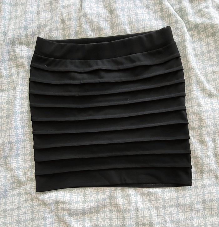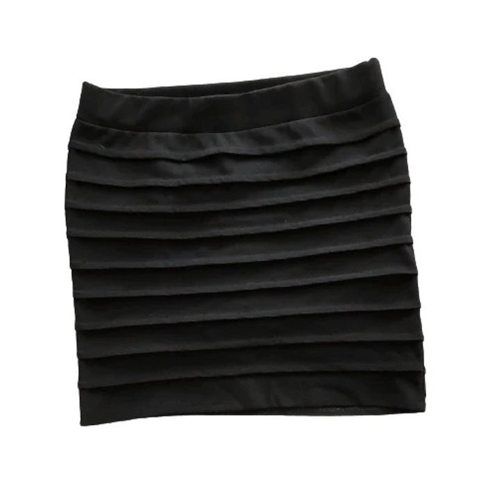 Mini jupe près du corps avec bandes en relief. Elasthane. Le Noir n'est pas du tout délavé Mesures sur les photos