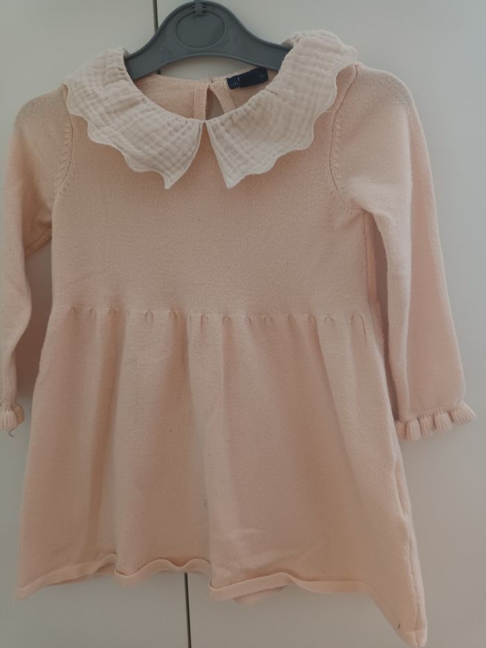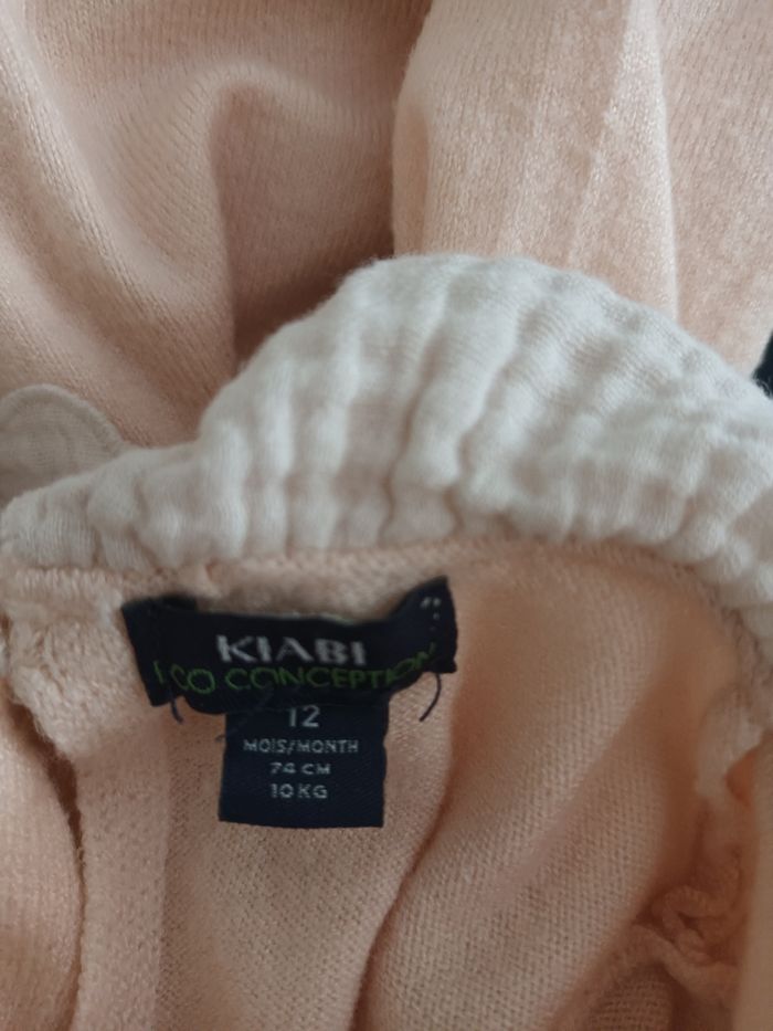 Bonjour Je vend cette robe 12 mois (74 cm) de la marque Kiabi qui s'attache par 1 bouton dans le col. Robe en très bon état.