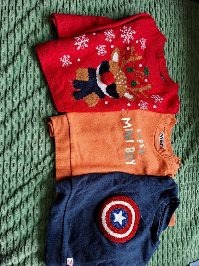Lots de 24 vêtements pour garçon Que du 3 mois en bon état Maison non fumeur 2 bodys manches courtes et 5 longues 4 pulls léger et 3 gros pulls 1 tee-shirt et 1 gilet 4 bas 4 pyjamas velours