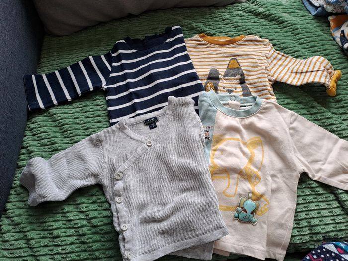 Lots de 24 vêtements pour garçon 3 mois en très bonne état Maison non fumeur 6 bodys manche longue Et 3 manche courte 4 pulls léger et 2 gros pulls 1 gilet 4 bas 2 pyjamas chaud et 2 léger