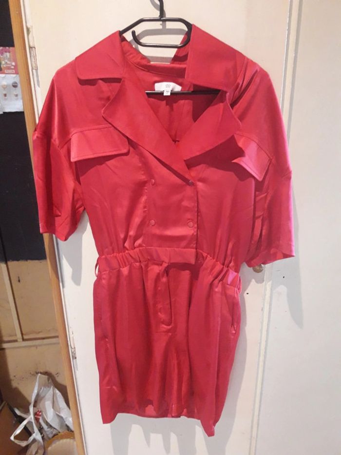 Combishort col tailleur en matière fluide satinee Poches poitrine et cotés Double boutonnage devant Taille elastiquee Longueurs entrejambe 12cm,bas 35cm