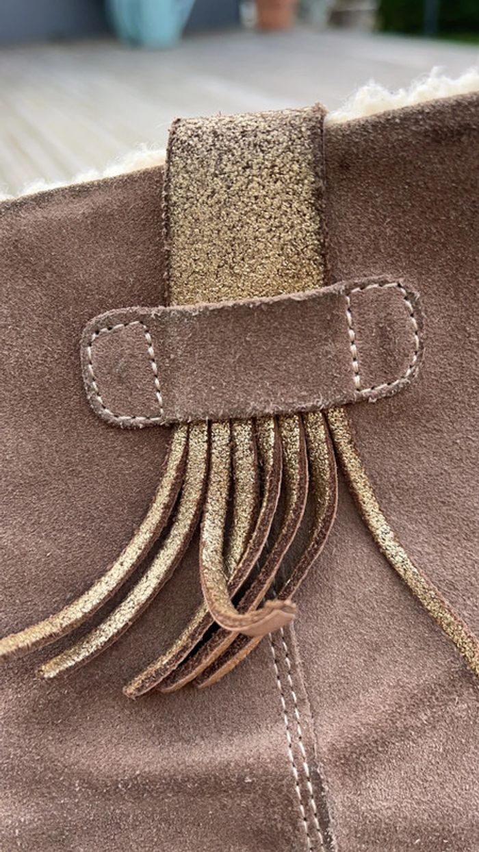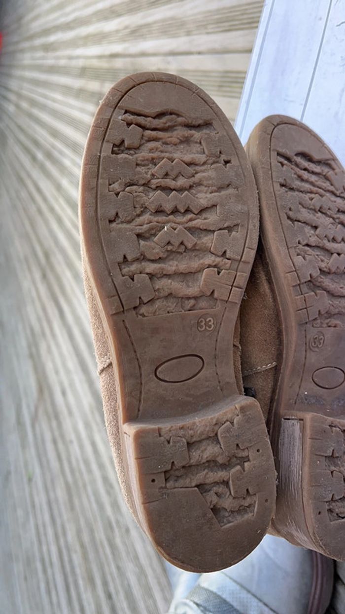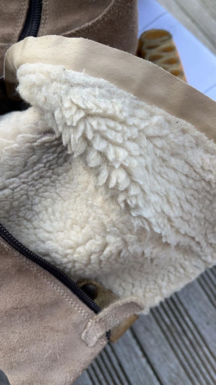 Très belle bottes haute fourrée Taille 33 Elles sont en dain marron clair Une petite tache derrière