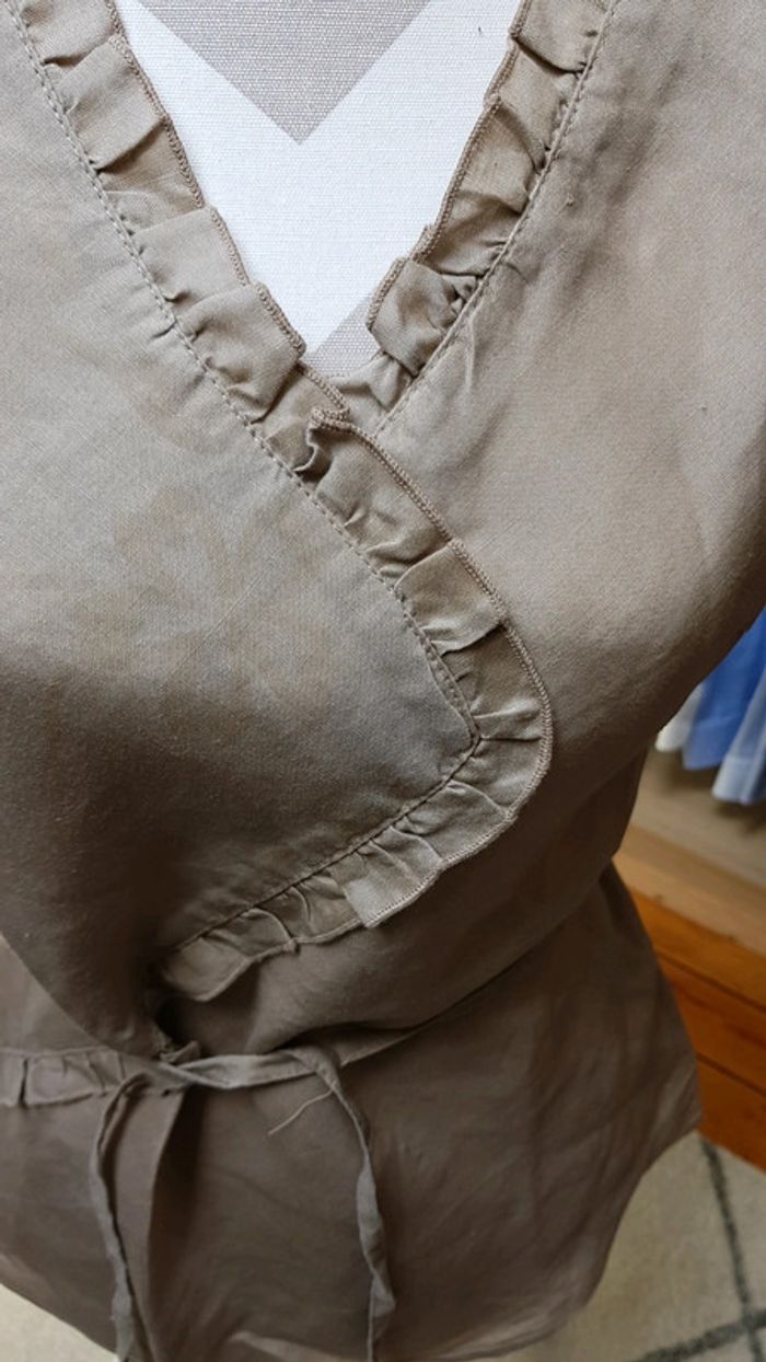 Beau chemisier marron effet lin comme neuf Marron très clair Ceinture+fermeture côté