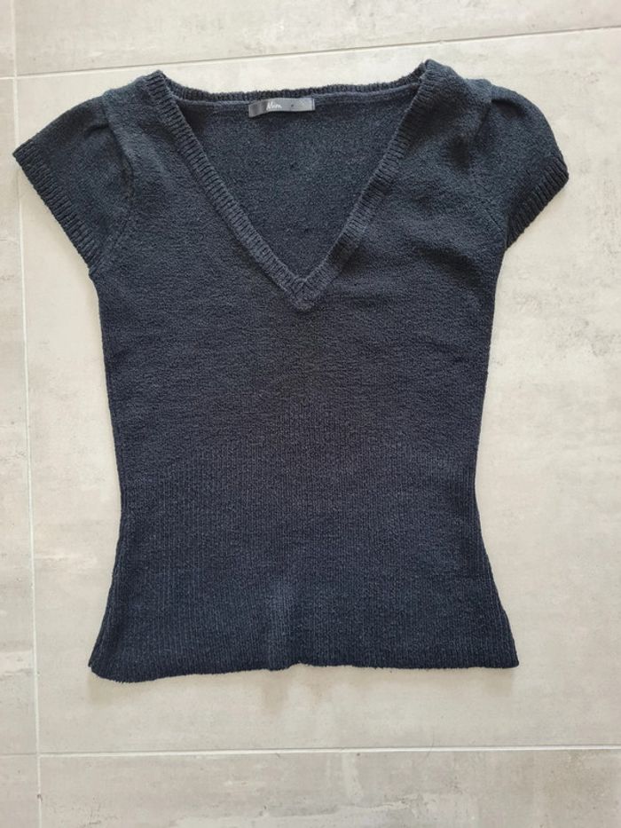 Top manches courtes en maille grand col V noir, près du corps. Mim taille 34 (étiquette coupée mais sûre de la taille). Très bon état, pas bouloché (ou vraiment très très léger). Tous mes articles sont lavés avant la vente. J'ai beaucoup d'articles donc n'hésitez pas à utiliser les filtres sur mon dressing pour trouver votre bonheur, faire des lots et profiter de réductions ! 😊 - 10% dès 3 articles 👗👚🩱 - 20% dès 5 articles 👡👙🧥👖👢