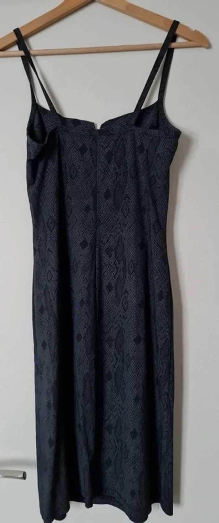 Robe fine bretelles gris/bleu très foncé, stretch avec imprimé peau de serpent(?). Coupe droite, petite fente au niveau du décolleté. Assez longue (je mesure 1m63). Jamais portée. Je ne sais plus la marque (il n'y a plus d'étiquette, juste la petite attache en plastique 😅). Taille 34. Tous mes articles sont lavés avant la vente. J'ai beaucoup d'articles donc n'hésitez pas à utiliser les filtres sur mon dressing pour trouver votre bonheur, faire des lots et profiter de réductions ! 😊 - 10% dès 3 articles 👗👚🩱 - 20% dès 5 articles 👡👙🧥👖👢