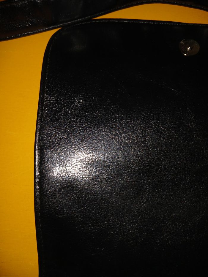 Sac à main en bandoulière. Une pochette à l'arrière. 2 compartiments à l'intérieur et 2 pochettes intérieures. 2 petites taches blanches (voir photos)