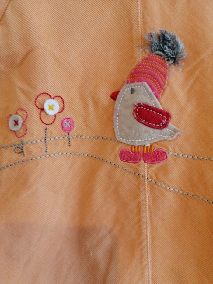 Velours Côtelé orange. Broderie. Boutons dos. Coton