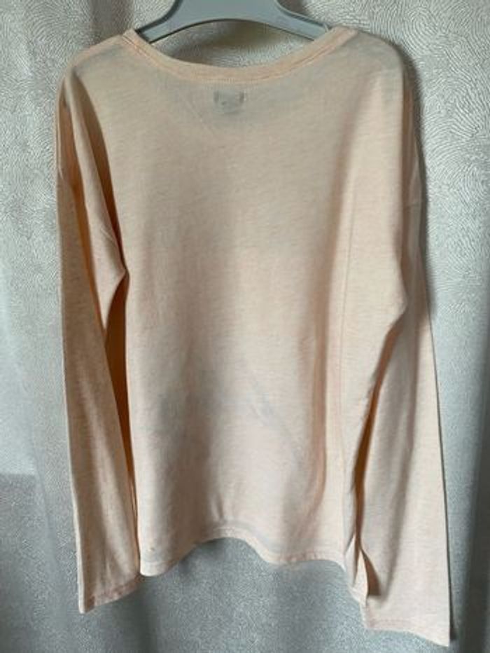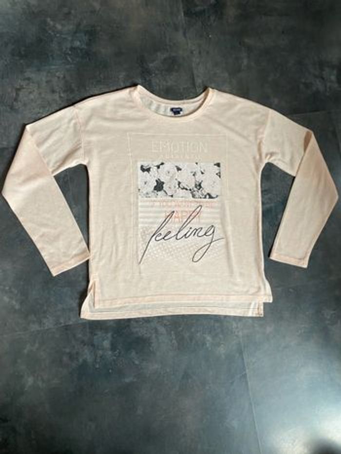 T-shirt tunique manches longues abricot chiné Imprimé devant roses noir et blanc et broderie Taille 10 ans kiabi