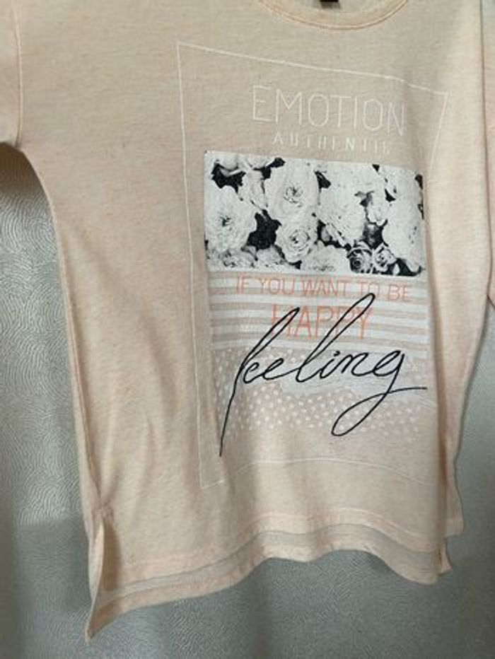 T-shirt abricot chiné roses noir et blanc 10 ans kiabi