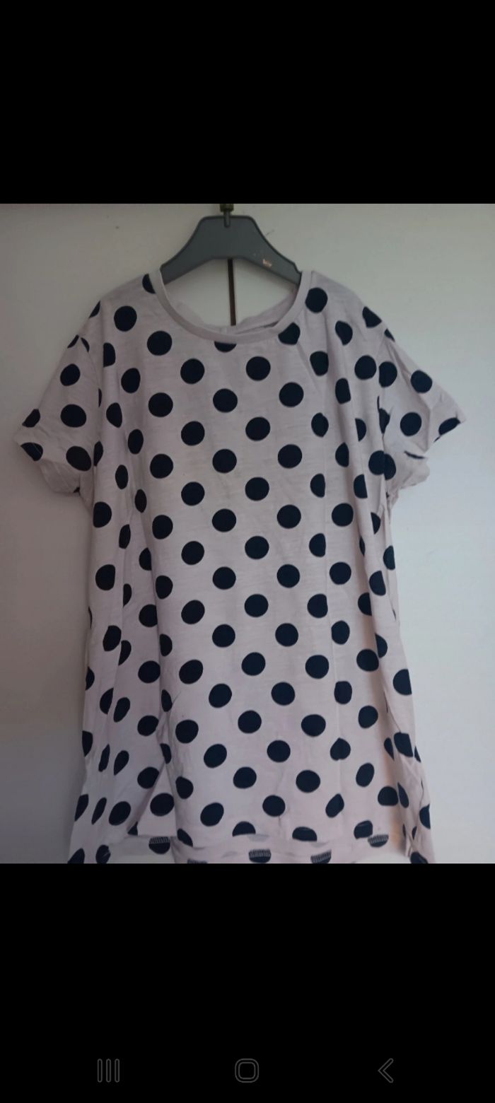 T shirt rose très très pâle, presque blanc avec ronds noirs 13 14 1ns Bon etat
