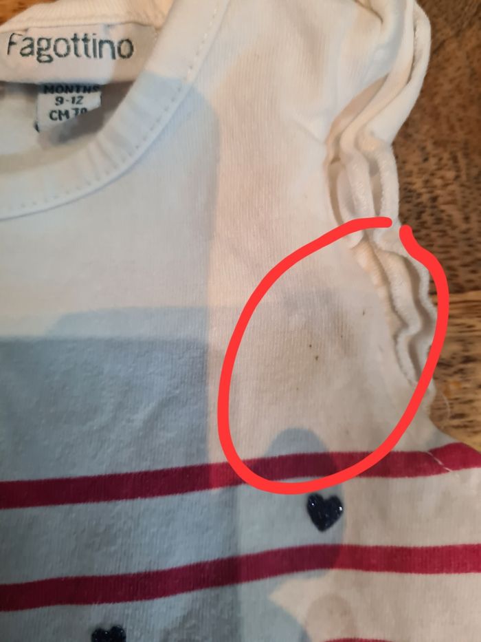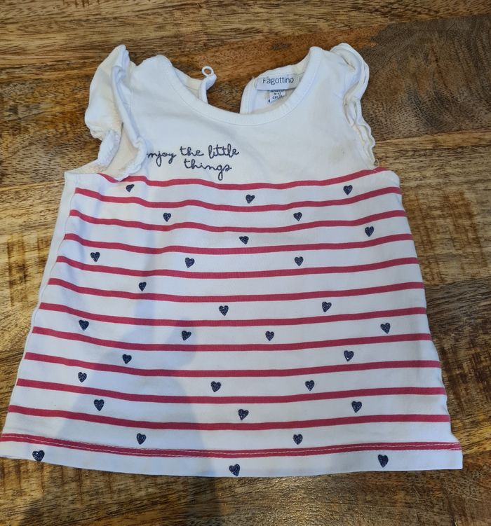 Maison non fumeur très bon état sauf mention. Diverses marques kiabi, Fagottino, Noppies. Tout en 74cm 12 mois. Tout est parfait état sauf : - t-shirt blanc avec le lion, légère tâche grisâtre qui se voit à peine. Voir photo. - T-shirt avec sirène, voir photo, tâche sur le bas du t-shirt à utiliser pour jouer... - t-shirt fagottino ligné rouge, tâche voir photo mais part sûrement au lavage car elle n'y etait pas avant... #gg9moisgirl #gg12moisgirl #74cmfille #Noppies #lotete #74cm #12moisfille #été
