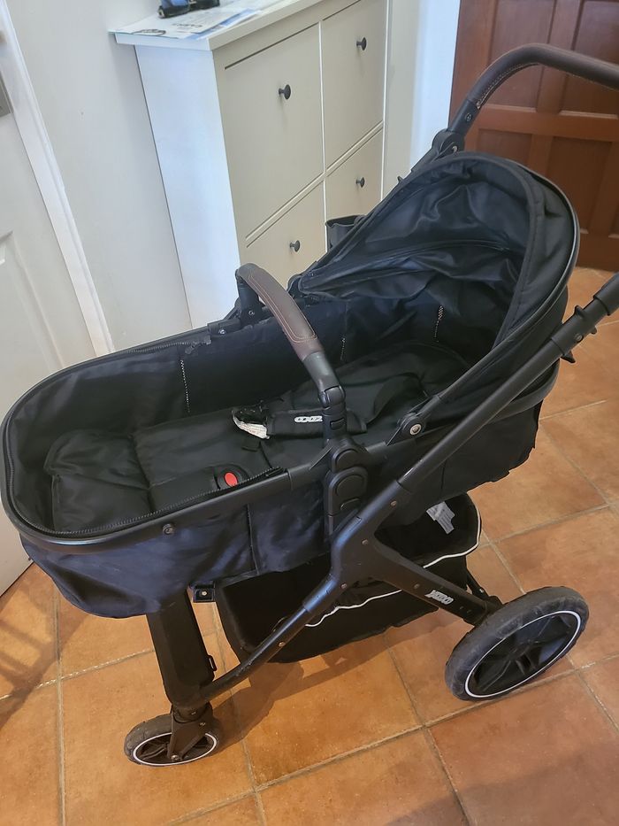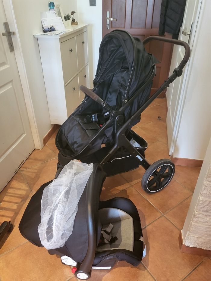 Vend poussette trio Super pratique On peut l'utiliser en landau, avec le cosy ou position assise pour les plus grand. Légère avec son bac assez grand pour son sac et le notre ou des courses rapides! Je la vend avec une moustiquaire et le support biberon. Quelques traces d'usures à voir sur les 2 dernières photos. Je la vend car bebe a bien grandit et le cosy est devenu petit pour lui. A récupérer sur place uniquement ⚠️pas de paylib ⚠️