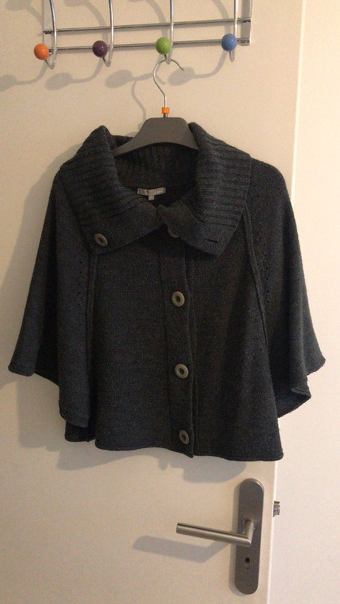 Veste poncho originale et très agréable à porter. De marque etam, en S. Matière qui bouloche un peu mais reste en bon état. Le col se porte de différentes manières.