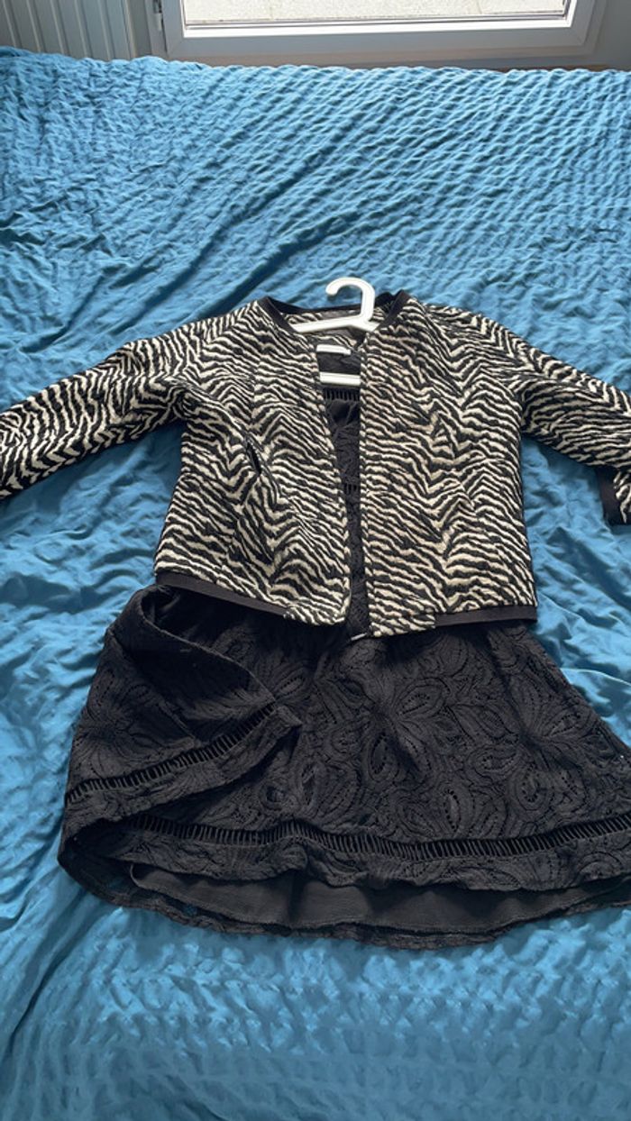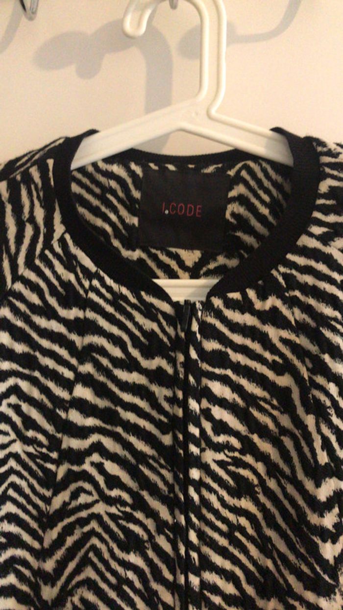 Jolie veste zébrée de marque I Code by IKKS en M, convient à un 38/40. Doublée, poches sur le devant. Comme neuve. Achetez le look complet ! Robe également disponible sur mon dressing.