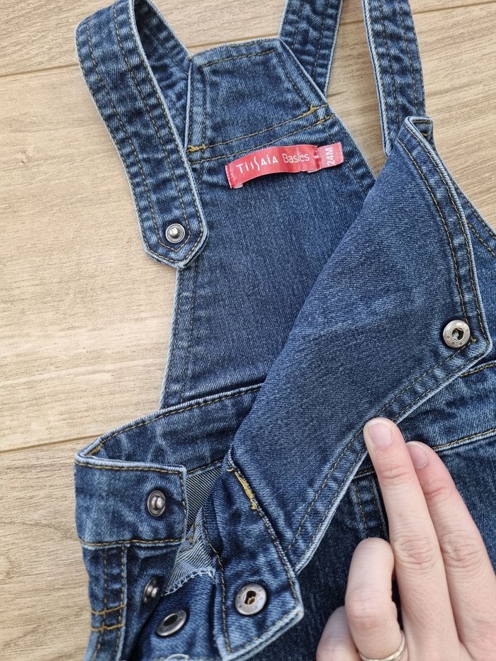 Robe 👗 en jeans bleu foncé à bretelles Pressions Poches à l'arrière #harmonie1017fille24mois tis