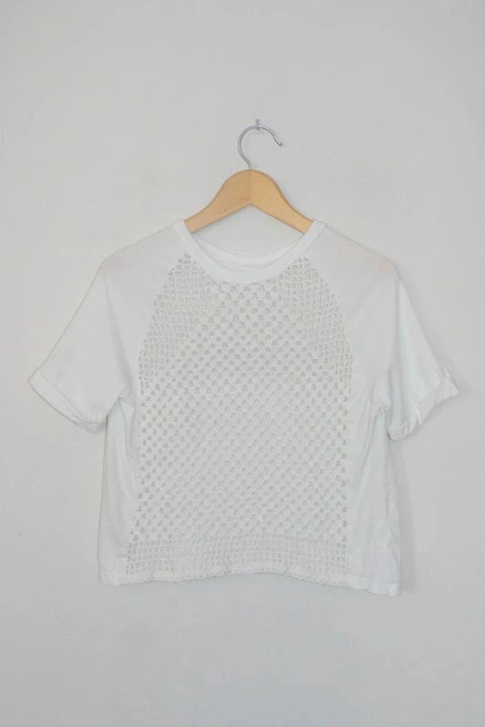 Tee-shirt blanc manches courtes devant crochet de chez Pimkie, taille XS, 140g