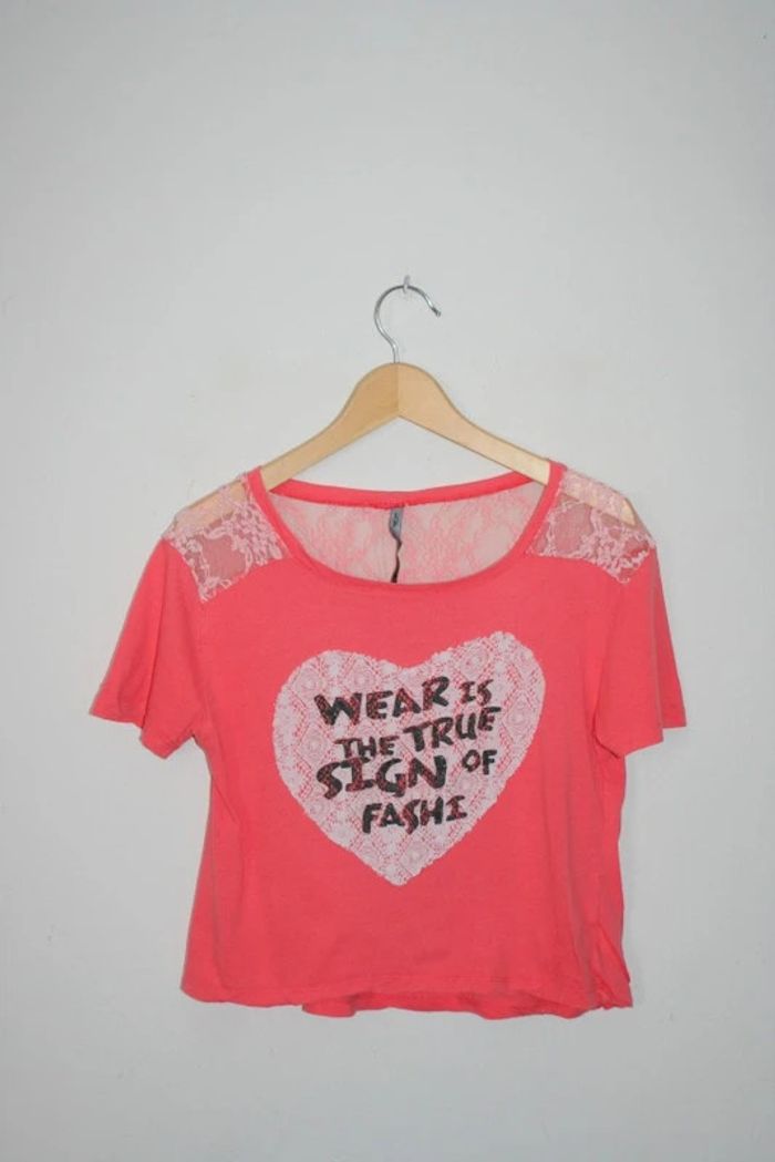 Haut court marque maElla taille grand S, bien porté donc un peu pelucheux par le lavage, minuscule trou à l'arrière de l'épaule gauche cf photo, 43cm épaule à épaule, 46cm de long, 100% coton, 80g