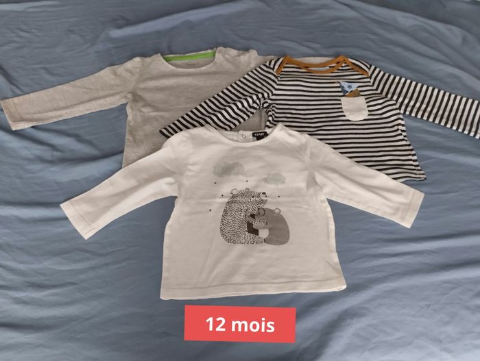 Lot de 3 t-shirts  manches longues taille 12 mois - photo numéro 1