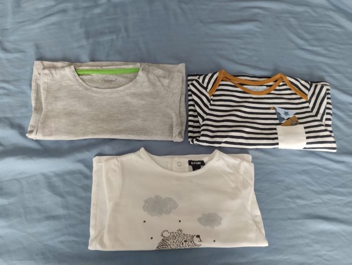 En très bon état. 2 marques bébé rêves et 1 marque Kiabi. Maison non fumeur. N'hésitez pas à visiter mon dressing.