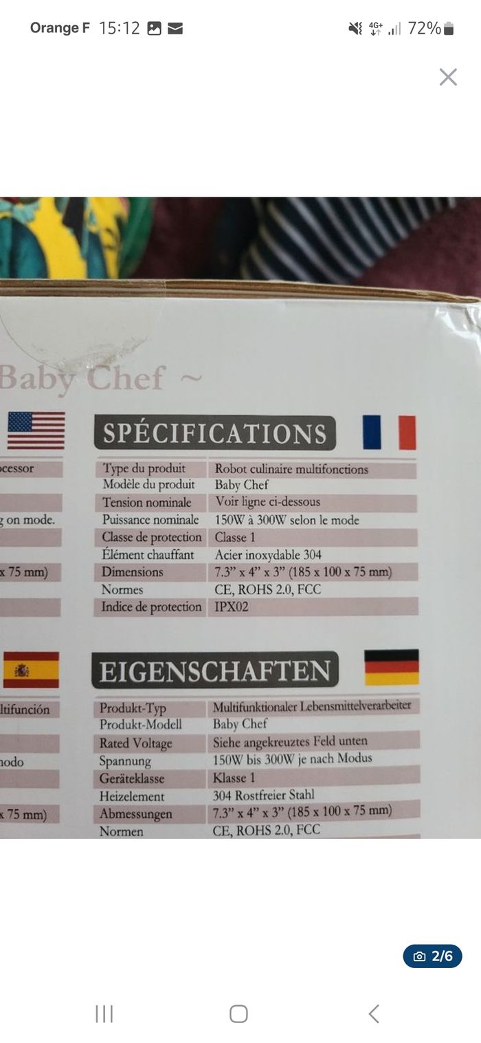 Robot cuiseur, neuf encore sous plastique. Robot 4 en 1 , cuiseur vapeur, melangeur, chauffe biberon et petits pots, stérilisateur.