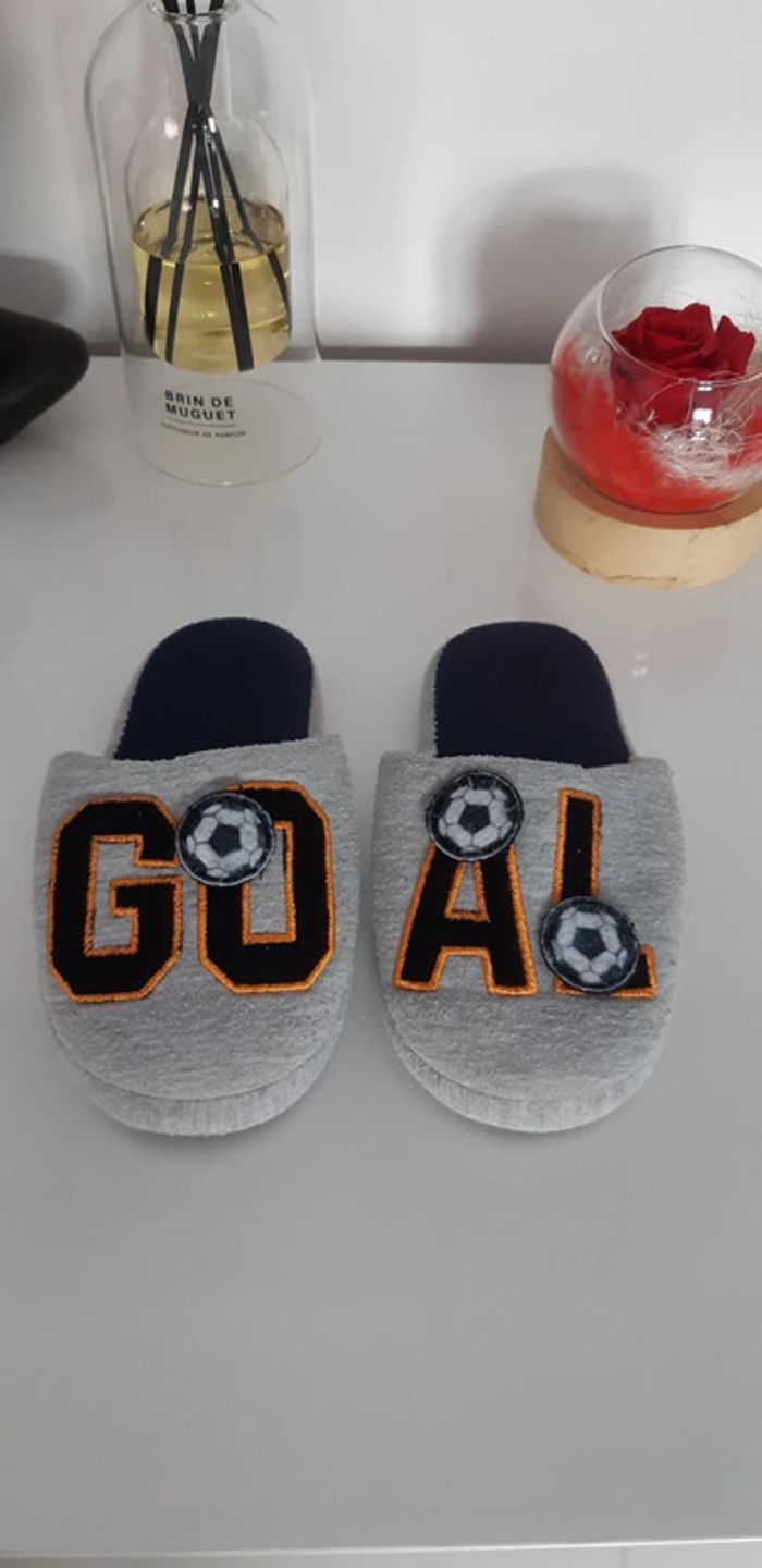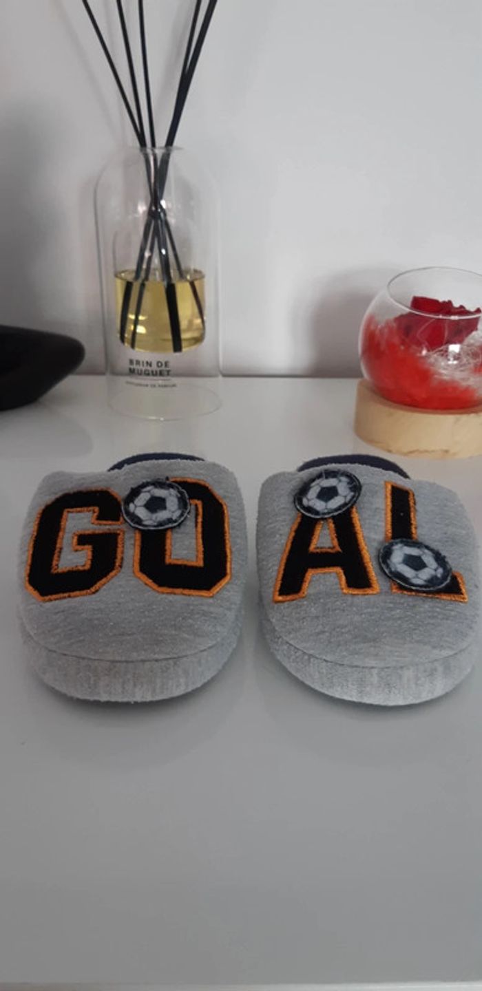 Chaussons garçon pointure 28/29 stickers ballon de football à scratchs amovibles.