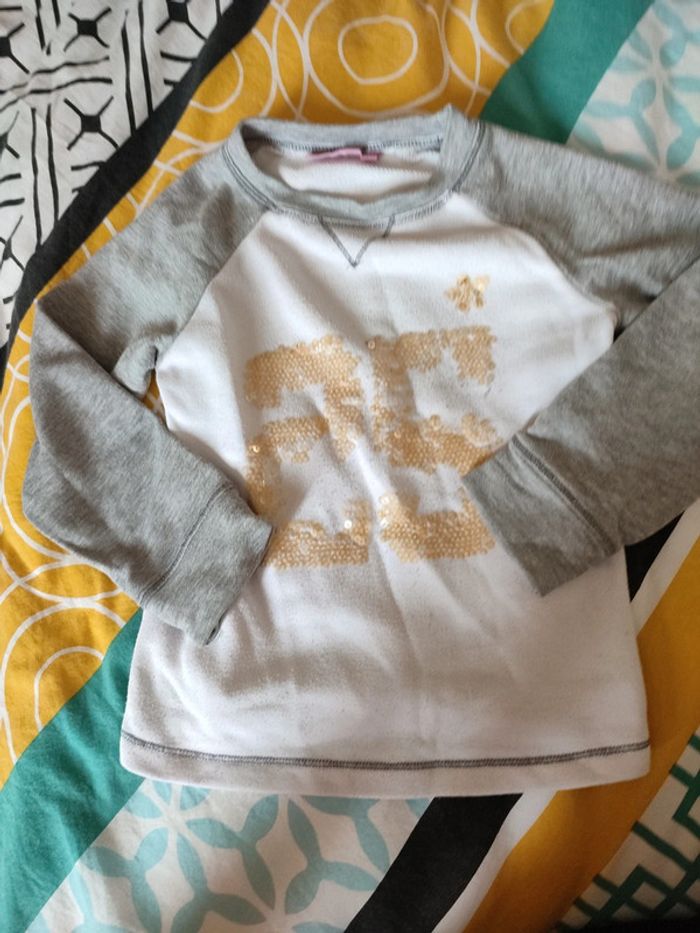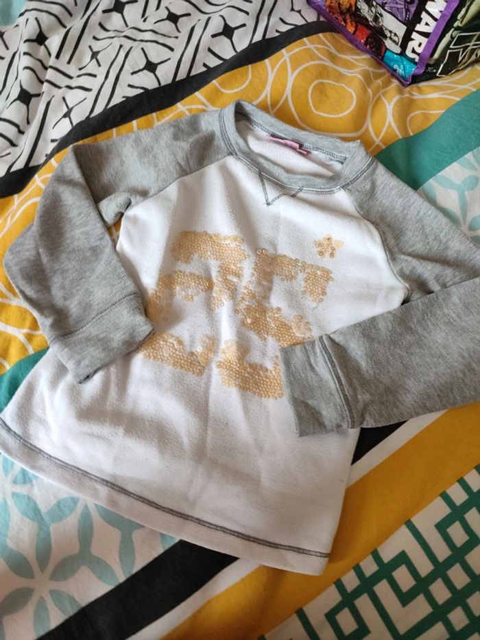Pull gris et blanc numéro 25 taille 6 ans #fanny26210fille6ans