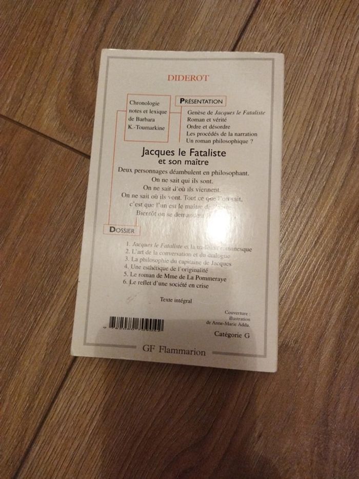 Vends livre littérature "Jacques le fataliste" très bon état.