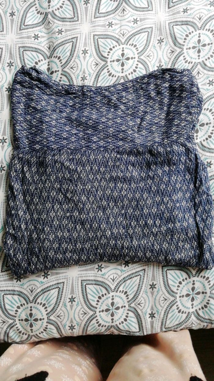 #vêtementsfemmetaille40angeliquel777 #vêtementsfemmetailleLansangeliquel777 Vends blouse femme col V en très bon état, Camaïeu, moucheté bleue et blanche, taille élastiquée; possibilité de faire des manches 3/4 en attachant la manche à un bouton. Taille 40.