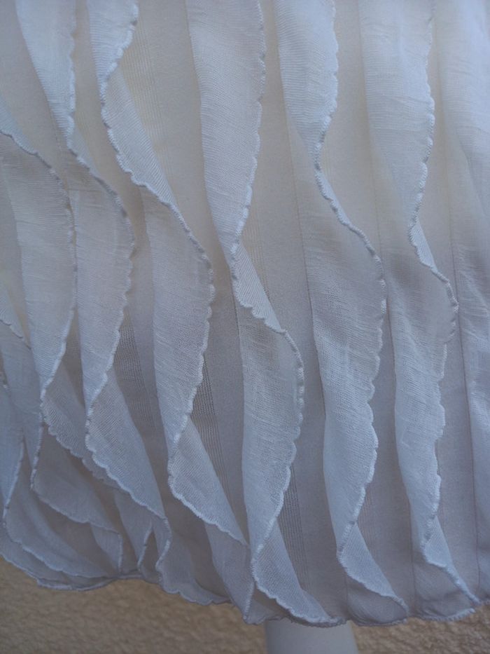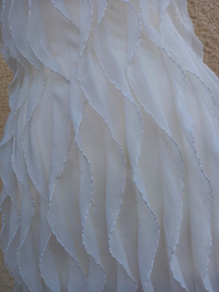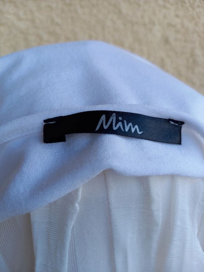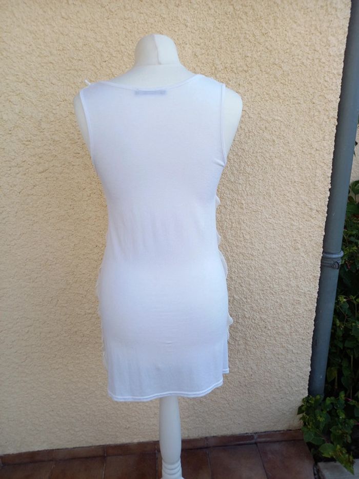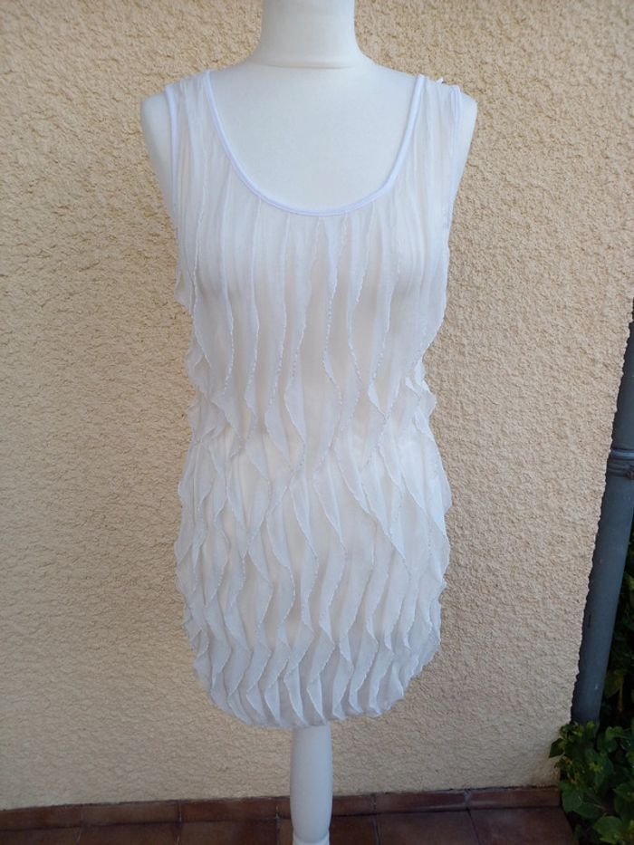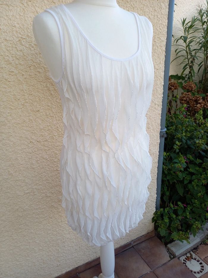 Tunique Mim Taille 38 étiquette coupée Couleur blanche et volants crème Légèrement transparente dans le dos Longueur 82 cm Parfait état #linejac38