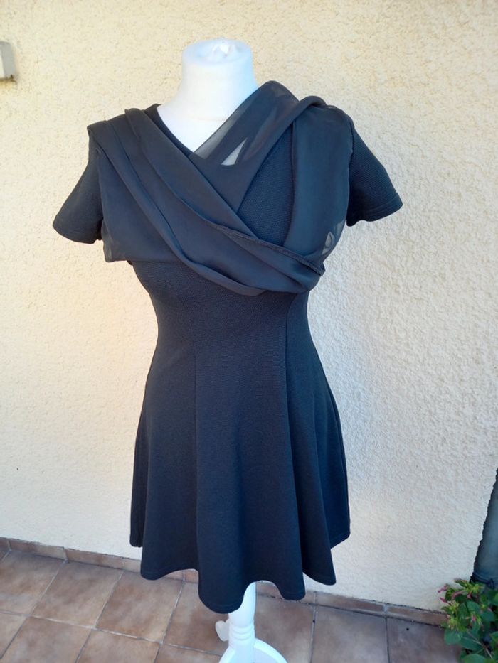 Robe noire Voile a nouer sur le corsage Taille 36 Petit décousu du voile a l'intérieur de la couture Très bon état #linejac36