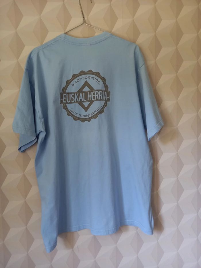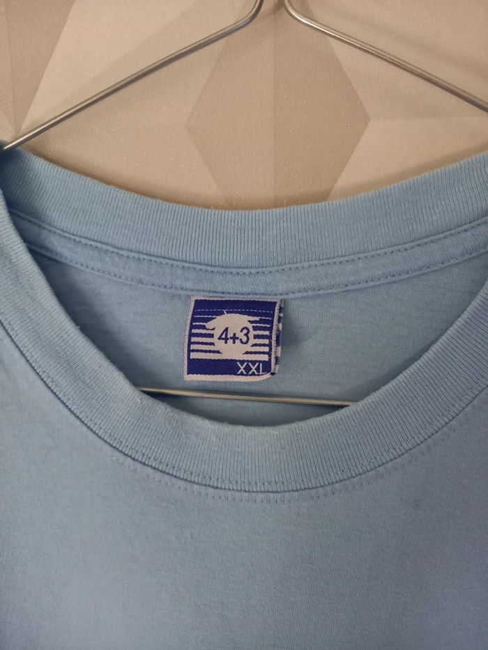 Tee-shirt bleu ciel Marque Basque, quatreplustrois Taille XXL Porté , 2 petites tâches devant côté gauche Bon état général #linejac18_hommexxl