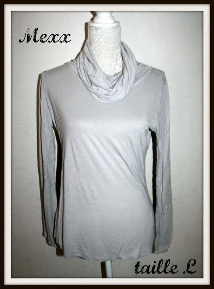 Sous pull lycra gris clair Mexx taille L, légèrement pailleté, 230g