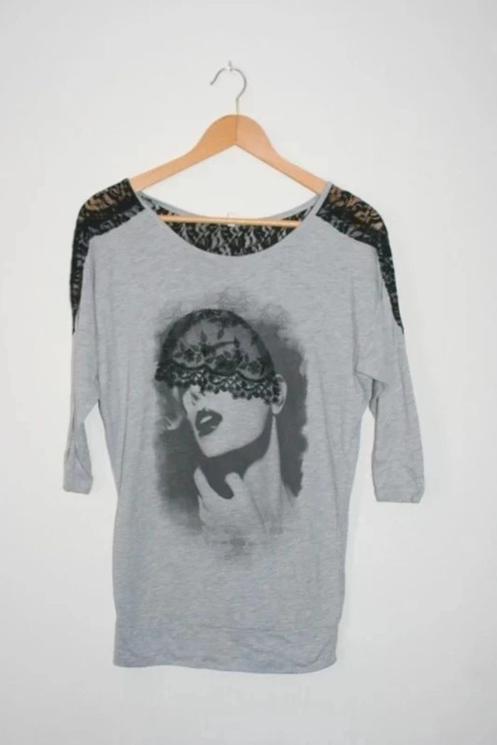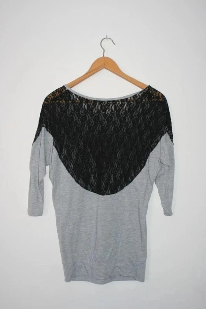 Tee-shirt long manches 3/4 de chez Jennyfer, taille S, dos en dentelle (150g)