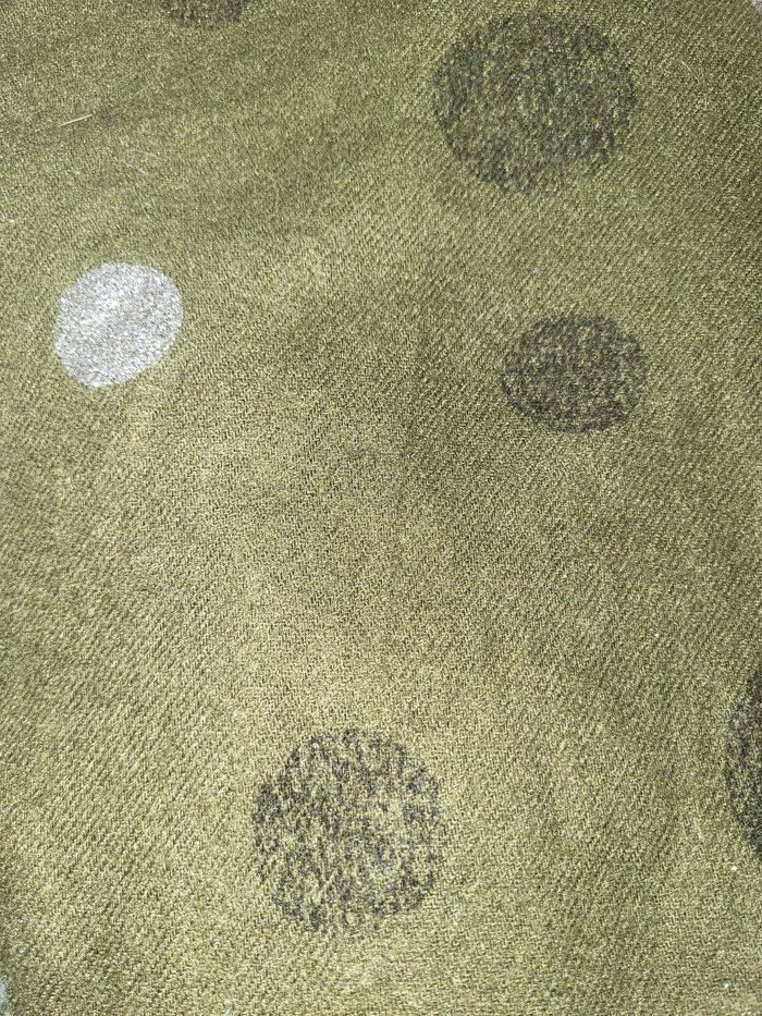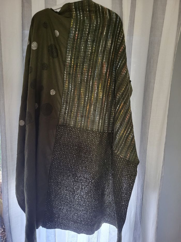 Echarpe / Étole verte kaki comme 1ère photo 4 carrés avec motif différent (cf photos) Très douce 90% Viscose 10% Laine 1m20 environ / 1m30 Quasi neuve, mis très peu