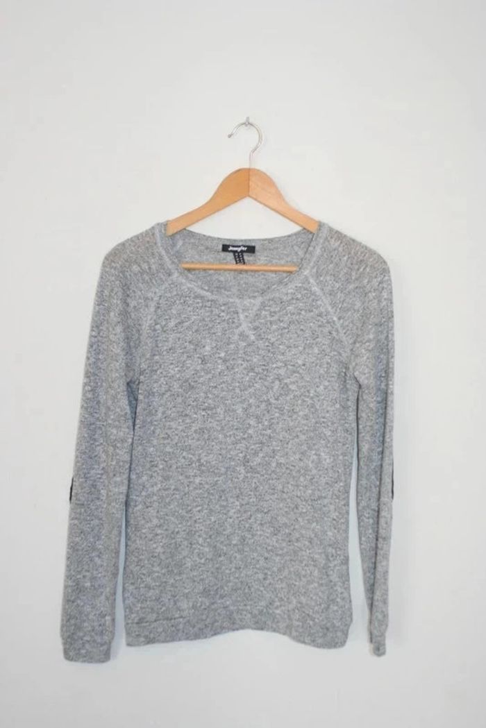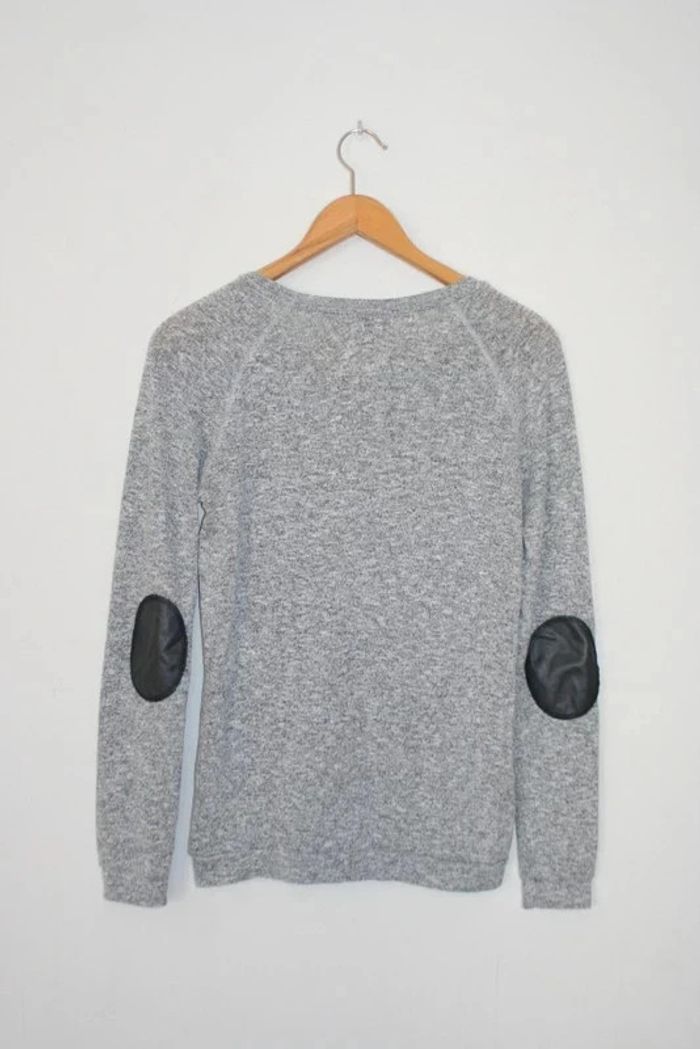Tee-shirt matière lainage, gris chiné, coudières simili cuir, de chez Jennyfer, taille M, 200g